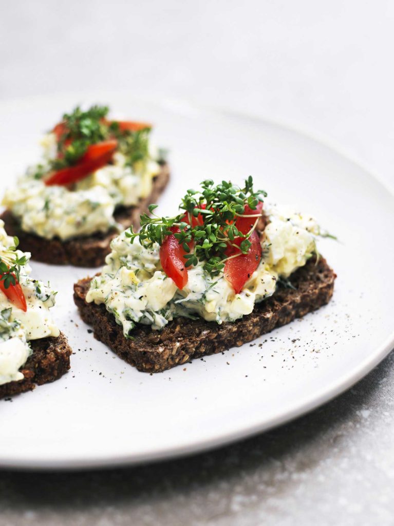 This is a classic in many countries. I will admit that I do not care for the readymade and never buy it, but I do like a freshly made egg salad. It must be made on organic eggs with a lot of herbs and a bit of lemon juice, so it feels fresh. Then on pieces of rye bread that gives it texture and a nicely balanced flavour.