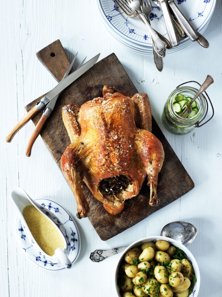 Arrange the cabbage and potatoes on a warmed serving dish, pour over the contents of the pan, decorate with dill, and serve right away.